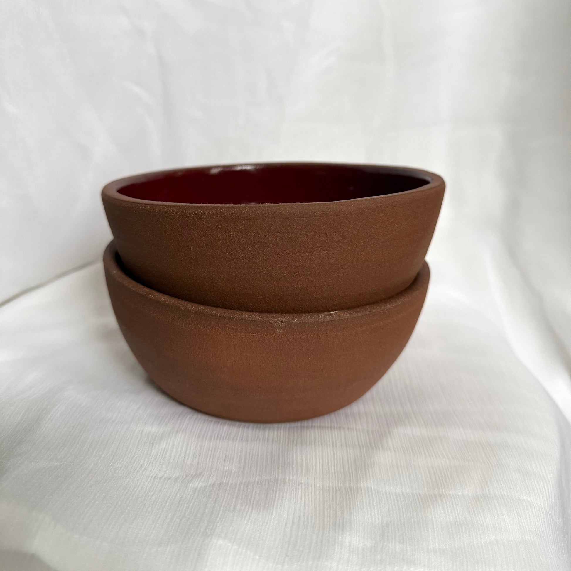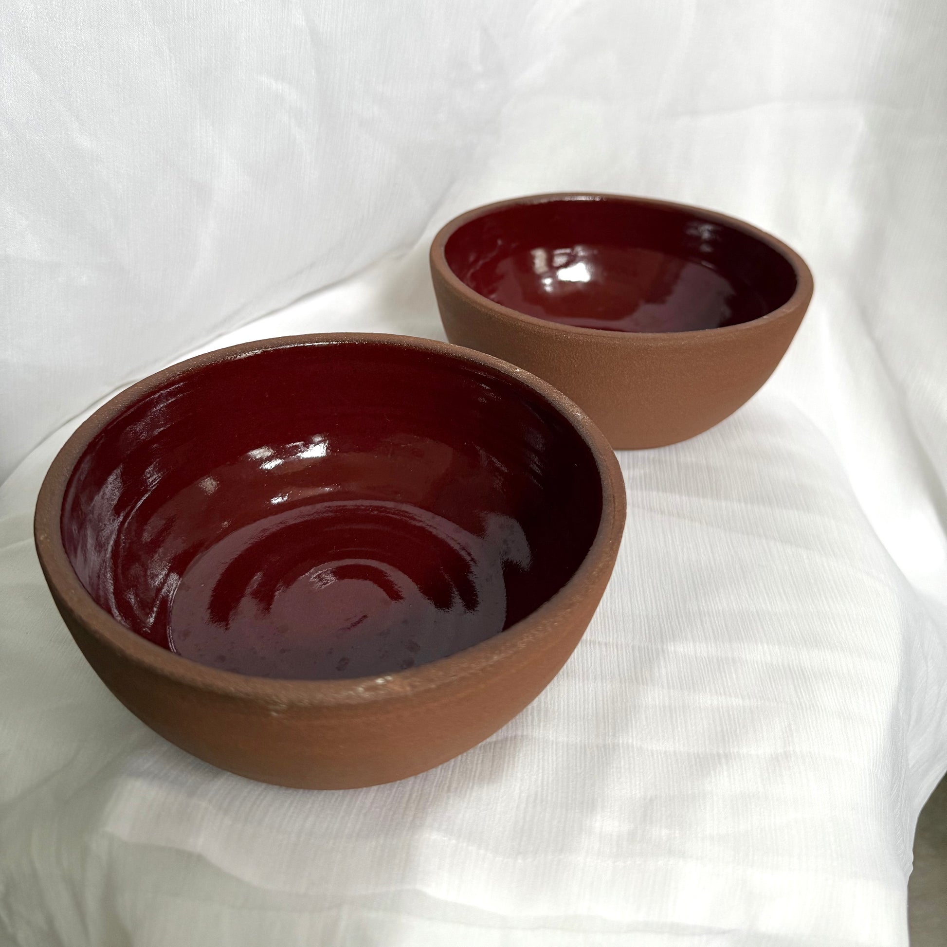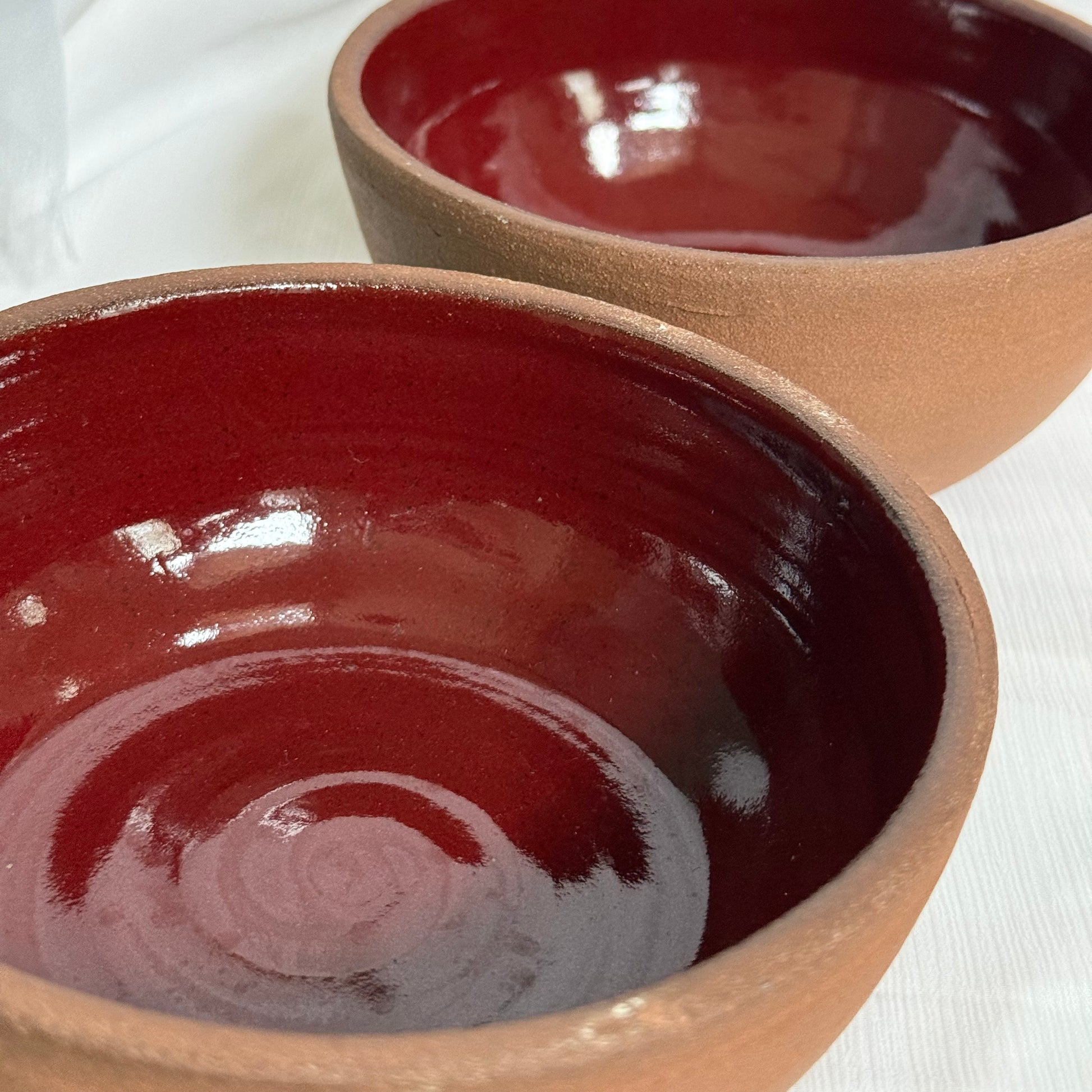 2 perfect cereal bowls that are bound to stay together in the same household. made from my favorite clay body which is shown bare on the outside of the bowls